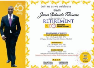 15th August Is The Date For James Babasola Folorunso’s Thanksgiving at Agape Christian Assembly, Ado Ekiti.