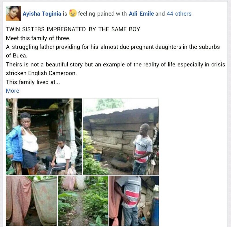 A Facebook user has shared an unusual story of 16-year-old twin sisters who are expecting a baby for the same boy in Cameroon.