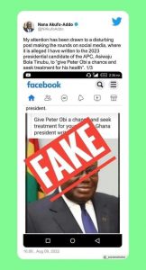 Specifically, Akufo-Addo said the post regarding Obi, presidential candidate of the Labour Party (LP), is false and mischievous.