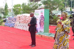 …as President’s support group distributes 1,600 bags of rice
