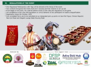 Beyond the game itself, the festival will serve as a platform to celebrate and promote the vibrant tapestry of Yoruba culture and arts through various events, workshops, exhibitions, and performances, we will highlight the rich traditions, music, dance, storytelling, and crafts that define our heritage.
