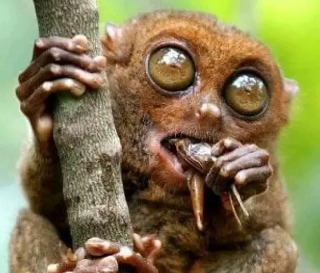 Tarsiers eat a wide range of insects, including as spiders, termites, beetles, moths, ants, grasshoppers, walking sticks, cockroaches, and crickets. In addition, they eat leaves and fruits. For refreshment and hydration, they sip water.
