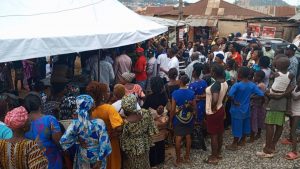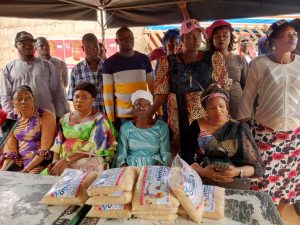 The APC guber candidate’s wife who was represented by notable party leaders from Ado APC ward 11 distributed customized sachets of 2kg rice and salt to some market women and men at Irona this evening.
