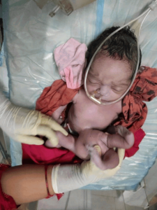 The child weighed 6.5lbs and was born at the Shahabad Community Health Centre, in the state of Uttar Pradesh.