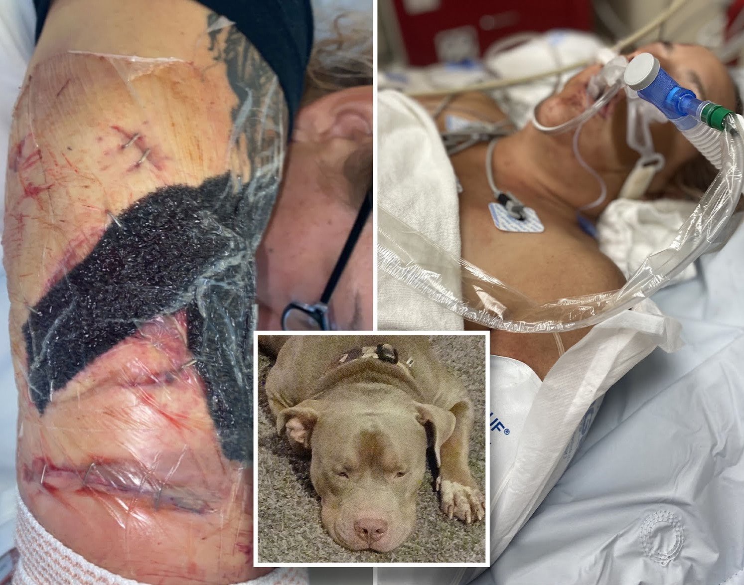 A woman was almost eaten alive by her pet pitbull when it attacked her and devoured half her arm.