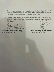 The National chairman of the PDP, Dr. Iyorchia Ayu, who announced the nullification at a media briefing on Monday night, said the Ekiti governorship primary election will be conducted using the statutory/automatic delegates list.