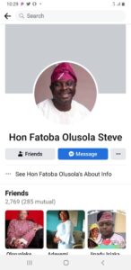 This is to inform the general public that a certain Facebook account with the name, “Hon Fatoba Olusola Steve” being operated by a faceless unscrupulous element with the intent of defrauding members of the public does not belong to Hon. Fatoba Olusola Steve, House of Reps. member representing Ekiti Central Federal Constituency 1.