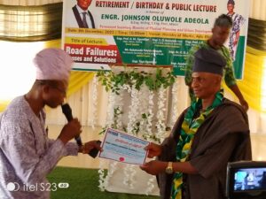Engineer Johnson who was once a Lecturer at the University of Ado Ekiti now Ekiti State University was presented with many awards, gifts and words of commendations from friends, junior colleagues, former students and well wishers.