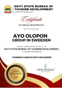 The Director General of the Board of Tourism Development in Ekiti State Ambassador Wale Ojo-Lanre after due consideration approved the group’s letter of intent and registration and stamped the licensed Certificate of Operations in his office on 19th June 2024.