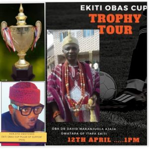 During the trophy tour, an indigene of Itapa Ekiti, Ayo Omotosho who has also identified with the Ekiti Obas Cup will be honoured as A PILLAR OF SUPPORT for the maiden competition.