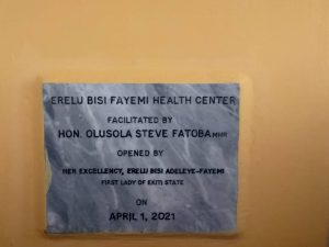 The wife of the Executive Governor of Ekiti state, Her Excellency, Erelu Bisi Fayemi has commissioned a well furnished multi-million naira magnificent health centre at Irewolede housing estate Ado-Ekiti facilitated by a sitting Federal lawmaker representing Ekiti Central Federal Constituency 1, Hon. Olusola Steve Fatoba on 1st April 2021.