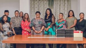 Erelu Fayemi also handed over a copy of the maiden publication of “Learning On The Job “ , a Nigeria Governors’ Wives Forum Handbook For State First Ladies which highlights the critical role of the First Lady as wife , champion, hostess , philanthropist and policy advocate .