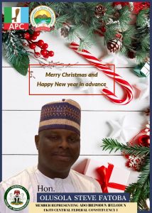 The member representing Ekiti Central Federal Constituency 1 at the National Assembly, Hon. Olusola Steve Fatoba has sent his greetings to christians in Ekiti state on the celebration of this year’s Christmas.