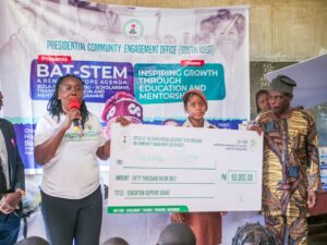 The initiative which was part of the federal government’s BAT-STEM (Scholarship, Training, Education, Mentorship) project aimed at providing critical school supplies and scholarships to students across various communities.