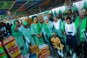 Nigeria’s First Lady and National Chairman of Renewed Hope Initiative (RHI), Senator Oluremi Tinubu on Thursday launched the Renewed Hope Initiative (RHI) Food Outreach in Ekiti State, with distribution of food items to People with Disabilities, widows l, special schools and other vulnerable groups in the state.