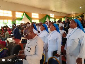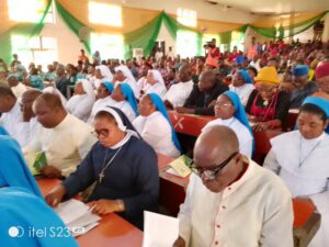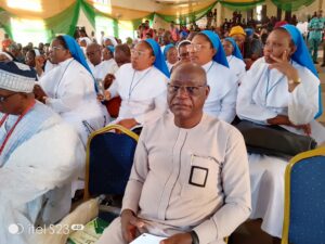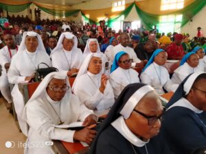 Guests and dignitaries who graced the occasion included representatives of the Congregation from the Catholic Church, monarch of the host community to the University, Oba Micheal Ademolaju, the Oloye of Oye kingdom, principal officers of the University including the DVCs Administraton and Academics, Professors Tajudeen Opoola and Olubunmi Shittu, University Registrar, Mr. Mufutau Ibrahim, University Librarian, Dr. Isaac Busayo, Chief Security Officer of the University, Mr. Paul Ogidi, Dean of Students’ Affairs, Prof. Wasiu Ali-Oyedokun, deans of various faculties Directors of units and heads of departments as well as a teeming population of s excited students of the University and lecturers who came to learn and also celebrate Prof. Asogwa.