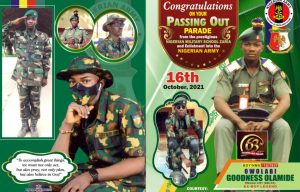 Parents of Olamide Goodness Owolabi, Elder and Mrs Owolabi have given God the glory for the successful graduation ceremony of their son, haven passed out in Nigerian Military School, Zaria.