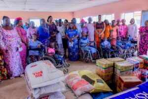The visibly elated physically challenged students and inmates of the rehabilitation center sang and danced with the First Lady in appreciation of her gesture. Their teachers and caregivers also commended the Wife of the Governor for the visit and for the gift and cash donations, which they said came less than three months after her last visit to the schools.