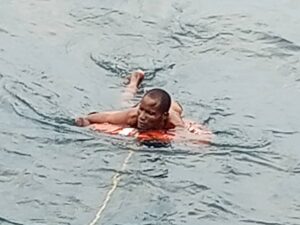 Narrating the story, Alonge who is the CEO of the shipping company told Heritage News that he was on his line of duty last week when he suddenly saw the people from afar jumping into the Sea, and wasn’t sure whether they were thrown into the Sea or they escaped into the Sea themselves, but noticed they were were drowning and helpless.