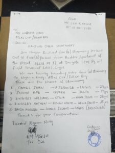 Alonge who said he suspected that the victims might have smuggled themselves into the ship which destination they didn’t know but sure hopeful that it was definitely sailing towards another country different from Nigeria.