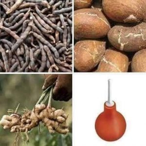 ginger, grind all. Mix with palm kernel oil. Give the child to drink and use the mixture as cream for the child.