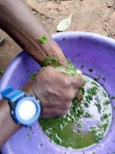 Get some leaves of Cochorus Olitorus(Vegetable Leaf) squeeze out the water and