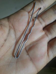 As I sat on the bed, I heard the spirit of God saying to me “GET UP”, I heard for the 2nd time ” GET UP, LOOK FOR SOMETHING TO PUT INTO YOUR EAR”, I stood immediately, went into the parlour, then my right ear has begun to make a funny sound like it was about to explode, I was still looking for what to put inside the ear, I found this hair pin on the shelve, I picked it up, dig it inside the ear, my hand was shaking, I kept using it to scratch it and lo and behold, I noticed the pin caught up with something, I began to drag it and that was how I drag these things out of my ear.