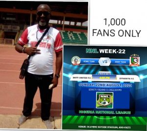 The Team Manager, Ekiti United fc, Olusola Babatola (Benbela) informed that the fans could not afford to miss tomorrow’s match, hence the resolve of the Management to allow JUST ONE THOUSAND fans into the Oluyemi Kayode stadium to watch the match live.