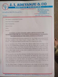 In order not to take law into our hands and to abide by the principle of peaceful conduct of our revered leader and the Aare Onakakanfo of Yorubaland, Iba Gani Abiodun Adams, we have directed our lawyer to write a petition to the State Commissioner of Police, Mr. Salami to put the criminals under security watch and control.
