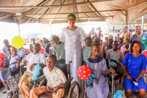 The First Lady who was joined by the Secretary to the State Government, Dr Habibat Adubiaro and other members of the State Executive Council shared the joy of the day with the students of the special schools by singing and dancing with them.