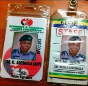 The suspect’s modus operandi is to impersonate a senior Police Officer between the ranks of Commissioner and Assistant Inspector General of Police, top-ranking EFCC officials, and/or a legal practitioner who owns a law firm by the name Dr.Kunle Adeshola & Associate has successfully defrauded many to the tone of about Ten Million naira (10,000,000).