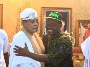 The winner of the last Saturday Ondo South Senatorial Primary election of All Progressives Congress, APC, Dr. Jimoh Ibrahim, CFR, has paid a courtesy visit to the traditional ruler of Ugbo Kingdom, Oba Federick Obateru Akinruntan, at the Olugbo Palace in Ode-Ugbo, Ilaje local government area of Ondo State.
