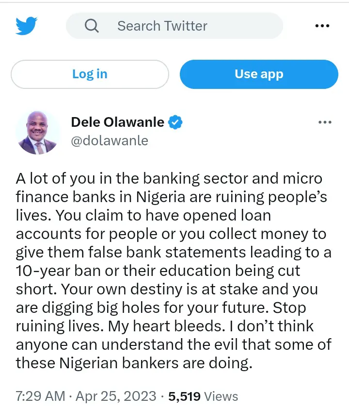Dele olawanle urged bank officials to stop these evil acts and refrain from offering false statements of account or opening loan accounts for a fee.